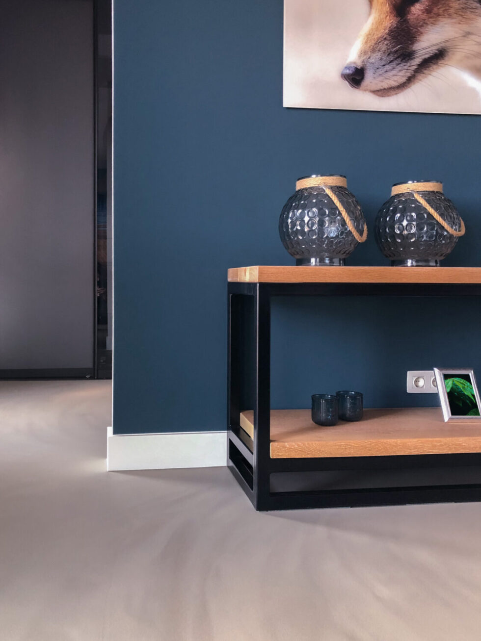De Familie Ladage zocht een vloersysteem dat past bij hun landelijke en industriële stijl. Kenmerkend zijn de houten en metalen materialen die zich voortdurend afwisselen. De Corestone Nature gietvloer sluit aan bij de wensen door het uiterlijk van een betonlook vloer. De ambachtelijke manier van aanbrengen geeft de vloer namelijk een robuuste, industriële look and feel.