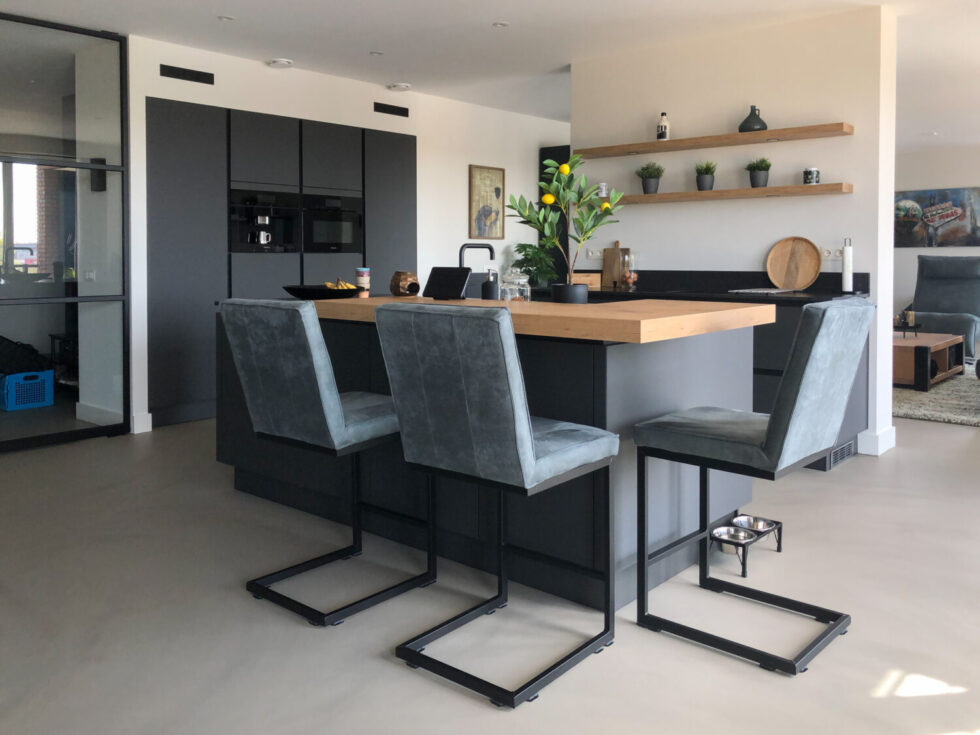 Eenmaal de vloer in de woning aangebracht wil de familie niet meer anders. De vloerkleur, namelijk Concrete blend, in combinatie met de gekozen meubels maken de inrichting compleet. Hier komt bij dat de praktische voordelen groter zijn dan bij andere vloersoorten zoals PVC, laminaat of tegels. Het ontbreken van naden maakt de vloer makkelijk reinigbaar.