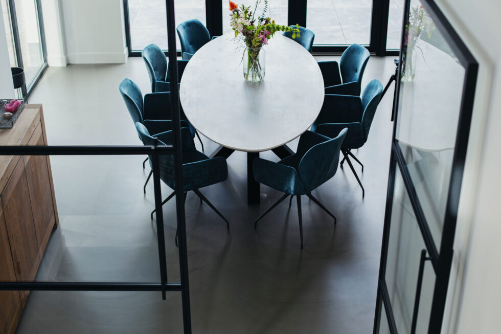 Een strakke gietvloer is een lust voor het oog en geeft elke ruimte in elke woning iets speciaals. Toen de Familie Smits hun kavel bemachtigde op Eiland IV, het meest zuidelijk gelegen eiland in Waterrijk Woerden, wisten ze het al: “We willen een hygiënische, naadloze vloer die warmte uitstraalt; een vloer die goed te combineren is met vloerverwarming en die bovendien geluiddempend werkt.” De EPI Superbase gietvloer voldoet aan al deze criteria en was daarom een logische keuze.